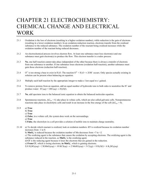 Chapter 21 Electrochemistry: Chemical Change And ...